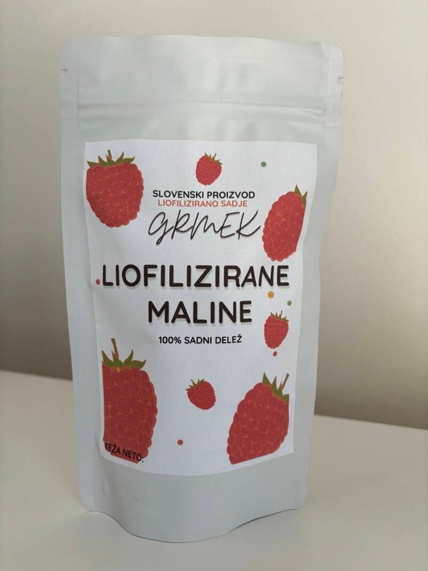 Liofilizirane maline so 100 % naraven izdelek, pridobljen s postopkom zamrzovanja in sušenja (liofilizacije), pri katerem se ohrani večina hranilnih snovi, barva in intenziven okus svežih malin.